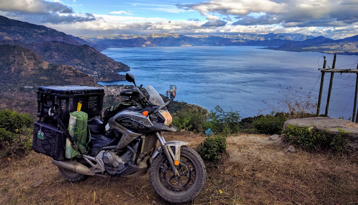 I returned the way I came and routed towards San Pablo. As the road began to switchback in its steep descent, I saw the lake for the first time. There was a little path leading up a hill, just wide enough for a motorcycle.
