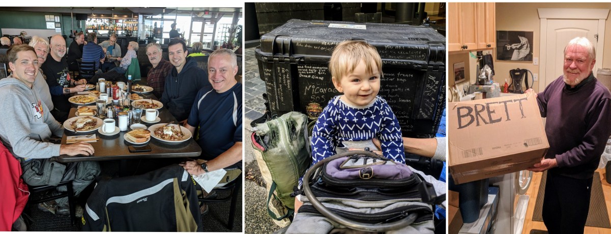 I first met him at a gathering of other motorcyclists at an airport in Delta. This was such a fun group and I enjoyed hearing their stories and sharing mine. They even included an Iowan, Ben, who could help translate things for me when the Canadian-speak got a little too heavy. 🙂